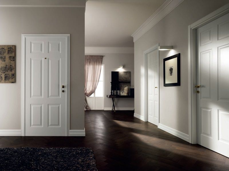 Белый пол воспринимается лучше, если в комнате уже есть элементы оформления в белой гамме. Интересно в этом цвете смотрится дверь, светильники, рамы для зеркал, потолочная лепнина и многое другое.