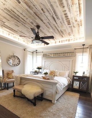 Деревянный потолок из ПВХ является недорогой альтернативой для отделки балкона, зоны барбекю, гостиной и спальни в деревенском стиле.