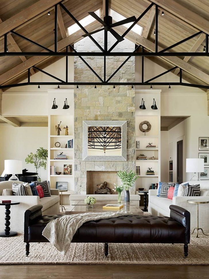 Вы задаетесь вопросом, как вывести свою гостиную на верхнюю ступень лестницы трендов? Как насчет удаления потолка и создания гостиной двойной высоты? Этот стиль сказочный, модный и функциональный.![]()