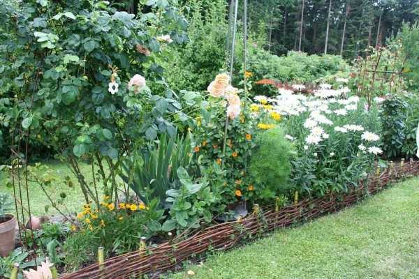 Π‘ΡΠΈΠ»Ρ, Π½Π° ΡΠΎΡΠΎ Π²ΡΠ³Π»ΡΠ΄ΡΡΠΈΠΉ Π΅ΡΡΠ΅ΡΡΠ²Π΅Π½Π½ΠΎ ΠΈ Π½Π΅ΠΏΡΠΈΠ½ΡΠΆΠ΄Π΅Π½Π½ΠΎ, ΠΎΡΠ½ΠΎΠ²Π½ΠΎΠΉ ΡΠΏΠΎΡ Π² ΠΊΠΎΡΠΎΡΠΎΠΌ Π΄Π΅Π»Π°Π΅ΡΡΡ Π²ΡΠ΅ ΠΆΠ΅ Π½Π° ΠΏΡΠ°ΠΊΡΠΈΡΠ½ΠΎΡΡΡ, ΠΏΡΠΈ ΡΡΠΎΠΌ ΡΡΡΠΊΡΠΎΠ²ΡΠ΅ Π΄Π΅ΡΠ΅Π²ΡΡ ΠΏΡΠ΅Π²Π°Π»ΠΈΡΡΡΡ Π½Π°Π΄ Π΄ΡΡΠ³ΠΈΠΌΠΈ ΠΏΠΎΡΠ°Π΄ΠΊΠ°ΠΌΠΈ. Π Π°ΡΡΠ΅Π½ΠΈΡ Π΄Π»Ρ ΠΏΠΎΡΠ°Π΄ΠΊΠΈ Π² ΡΠ°Π΄Ρ ΡΠΎΠΎΡΠ²Π΅ΡΡΡΠ²ΡΡΡ ΠΊΠ»ΠΈΠΌΠ°ΡΠΈΡΠ΅ΡΠΊΠΎΠΉ Π·ΠΎΠ½Π΅, Π½Π΅ ΡΡΠΎΠΈΡ Π·Π»ΠΎΡΠΏΠΎΡΡΠ΅Π±Π»ΡΡΡ ΡΠΊΠ·ΠΎΡΠΈΡΠ΅ΡΠΊΠΈΠΌΠΈ, Π½Π΅ ΡΠ²ΠΎΠΉΡΡΠ²Π΅Π½Π½ΡΠΌΠΈ Π΄Π»Ρ Π΄Π°Π½Π½ΠΎΠΉ ΡΠΈΡΠΎΡΡ, ΠΊΡΠ»ΡΡΡΡΠ°ΠΌΠΈ. ΠΠΎΡΠΎΠΆΠΊΠΈ Π»ΡΡΡΠ΅ Π²ΡΠΏΠΎΠ»Π½ΠΈΡΡ ΡΠ²ΠΎΠΈΠΌΠΈ ΡΡΠΊΠ°ΠΌΠΈ ΠΈΠ· Π½Π°ΡΡΡΠ°Π»ΡΠ½ΡΡ ΠΌΠ°ΡΠ΅ΡΠΈΠ°Π»ΠΎΠ² β ΡΡΠΎ ΠΌΠΎΠ³ΡΡ Π±ΡΡΡ ΠΊΡΡΠ³Π»ΡΠ΅ ΡΡΡΠ±Π°ΡΠΊΠΈ ΠΈΠ»ΠΈ Π΄Π΅ΡΠ΅Π²ΡΠ½Π½ΡΠ΅ Π½Π°ΡΡΠΈΠ»Ρ, Π° ΡΡΠΎΠ±Ρ ΠΎΠ½ΠΈ ΠΏΡΠΎΡΠ»ΡΠΆΠΈΠ»ΠΈ ΠΏΠΎΠ΄ΠΎΠ»ΡΡΠ΅, ΠΈΡ Π½Π΅ΠΎΠ±Ρ ΠΎΠ΄ΠΈΠΌΠΎ Ρ ΠΎΡΠΎΡΠΎ ΠΎΠ±ΡΠ°Π±ΠΎΡΠ°ΡΡ Π°Π½ΡΠΈΡΠ΅ΠΏΡΠΈΠΊΠ°ΠΌΠΈ. ΠΠ°ΠΊ Π²Π°ΡΠΈΠ°Π½Ρ, ΠΌΠΎΠΆΠ½ΠΎ ΠΈΡΠΏΠΎΠ»ΡΠ·ΠΎΠ²Π°ΡΡ ΠΈ ΠΌΠΎΡΠ΅Π½ΠΈΠ΅ ΠΏΡΠΈΡΠΎΠ΄Π½ΡΠΌ ΠΊΠ°ΠΌΠ½Π΅ΠΌ. ΠΡΠ°ΡΠΈΠ²ΡΠΉ ΡΠ²Π΅ΡΠ½ΠΈΠΊ ΡΠΎΡΡΠ°Π²Π»ΡΡΡ ΠΈΠ· ΠΏΡΠΎΡΡΡΡ ,Β Β«ΡΡΠ°ΡΠΎΠΌΠΎΠ΄Π½ΡΡ Β» ΠΈ Π½Π΅ΠΏΡΠΈΡΡΠ·Π°ΡΠ΅Π»ΡΠ½ΡΡ ΡΠ²Π΅ΡΠΎΠ², ΠΏΡΠΈ ΡΡΠΎΠΌ ΡΠΎΡΠ΅ΡΠ°Π½ΠΈΠ΅ ΠΌΠ½ΠΎΠ³ΠΎΠ»Π΅ΡΠ½ΠΈΠΊΠΎΠ² ΠΈ ΠΎΠ΄Π½ΠΎΠ»Π΅ΡΠ½ΠΈΠΊΠΎΠ² (ΠΎΡΠΎΠ±Π΅Π½Π½ΠΎ ΡΠ΅Ρ , ΡΡΠΎ Ρ ΠΎΡΠΎΡΠΎ ΡΠ°Π·ΠΌΠ½ΠΎΠΆΠ°ΡΡΡΡ ΡΠ°ΠΌΠΎΡΠ΅Π²ΠΎΠΌ) ΠΏΠΎΠ·Π²ΠΎΠ»ΠΈΡ ΠΏΠΎΠ»ΡΡΠΈΡΡ ΠΏΠ΅ΡΡΡΡΡ ΡΠΌΠ΅ΡΡ ΠΊΡΠ°ΡΠΎΠΊ.