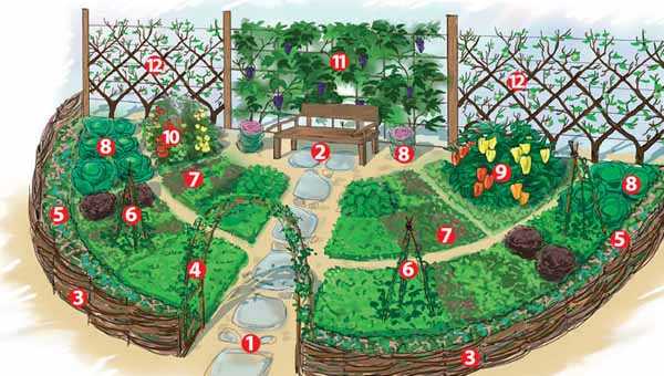ΠΡΠ΄Π΅Π»ΡΠ½ΠΎΠ΅ ΠΌΠ΅ΡΡΠΎ ΠΎΡΠ²ΠΎΠ΄ΠΈΡΡΡ ΠΏΠΎΠ΄ ΠΎΠ³ΠΎΡΠΎΠ΄, ΠΊΠ°ΠΊ Π²Π°ΡΠΈΠ°Π½Ρ β Π³ΡΡΠ΄ΠΊΠ° Ρ Π·Π΅Π»Π΅Π½ΡΡ ΠΈΠ»ΠΈ Π»Π΅ΠΊΠ°ΡΡΡΠ²Π΅Π½Π½ΡΠΌΠΈ ΡΠ°ΡΡΠ΅Π½ΠΈΡΠΌΠΈ. Π‘ΡΠΈΠ»Ρ ΡΠ°Π΄Π° ΠΈ ΡΡΠ°ΡΡΠΊΠ° ΠΌΠΎΠ³ΡΡ ΠΏΠΎΠ΄ΡΠ΅ΡΠΊΠ½ΡΡΡ Π½Π΅ΡΠΊΠΎΠ»ΡΠΊΠΎ ΡΡΠΊΠΈΡ Π΄Π΅ΡΠ°Π»Π΅ΠΉ β ΠΏΠ»Π΅ΡΠ΅Π½Π½ΡΠΉ Π·Π°Π±ΠΎΡ (ΡΡΠ½) Ρ ΠΏΠ΅ΡΠ΅Π²Π΅ΡΠ½ΡΡΡΠΌΠΈ Π³Π»ΠΈΠ½ΡΠ½ΡΠΌΠΈ Π³ΠΎΡΡΠΊΠ°ΠΌΠΈ ΠΈΠ»ΠΈ ΡΡΠ³ΡΠ½ΠΊΠ°ΠΌΠΈ, ΠΊΠΎΠ»ΠΎΠ΄Π΅Ρ (Π΄Π΅ΠΊΠΎΡΠ°ΡΠΈΠ²Π½ΡΠΉ ΠΈΠ»ΠΈ Π΄Π΅ΠΉΡΡΠ²ΡΡΡΠΈΠΉ) ΠΈ Π΄Π°ΠΆΠ΅ ΠΎΠ³ΠΎΡΠΎΠ΄Π½ΠΎΠ΅ ΡΡΡΠ΅Π»ΠΎ. Π Π³Π»Π°Π²Π½ΠΎΠ΅ β Π΄Π°ΠΆΠ΅ 6 ΡΠΎΡΠΎΠΊ Ρ Π²Π°ΡΠΈΡ, ΡΡΠΎΠ±Ρ ΠΏΠΎΠ»ΡΡΠΈΡΡ ΠΊΡΠ°ΡΠΈΠ²ΡΠΉ, ΠΆΠΈΠ·Π½Π΅ΡΠ°Π΄ΠΎΡΡΠ½ΡΠΉ, ΠΏΡΡΡΡ ΠΈ Π½Π΅ΡΠΊΠΎΠ»ΡΠΊΠΎ Π½Π΅Π±ΡΠ΅ΠΆΠ½ΡΠΉ ΡΠ°Π΄ β ΠΈ Π²ΡΠ΅ ΡΡΠΎ ΡΠ²ΠΎΠΈΠΌΠΈ ΡΡΠΊΠ°ΠΌΠΈ ΠΈ Π±Π΅Π· ΡΡΡΠ΅ΡΡΠ²Π΅Π½Π½ΡΡ Π·Π°ΡΡΠ°Ρ.