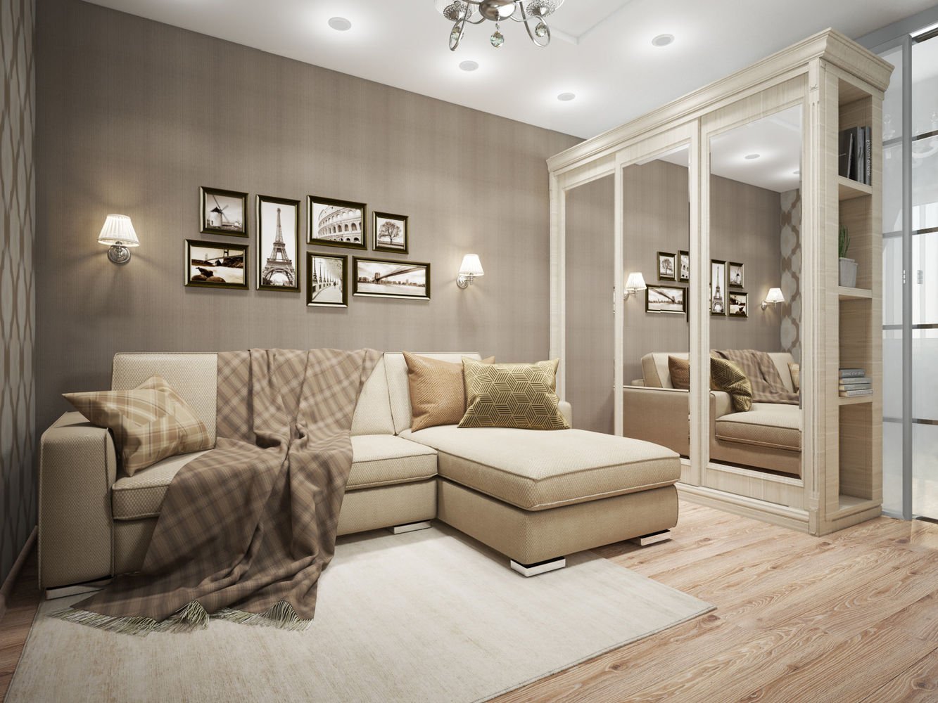 В любое помещение без особого беспокойства можно поставить шкафы, раскладные диваны и кресла, но полноценные варианты красивого дизайна более приемлемы внешне и по функциональности.А стоимость такого ремонта дешевле ремонта нескольких комнат, поэтому будет наблюдаться значительная экономия бюджета.