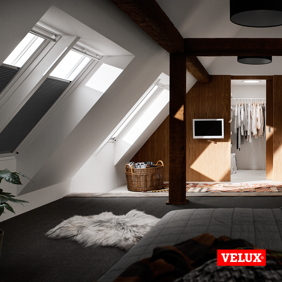 - Для оформления наклонных мансардных окон подойдут фиксированные шторы-плиссе.