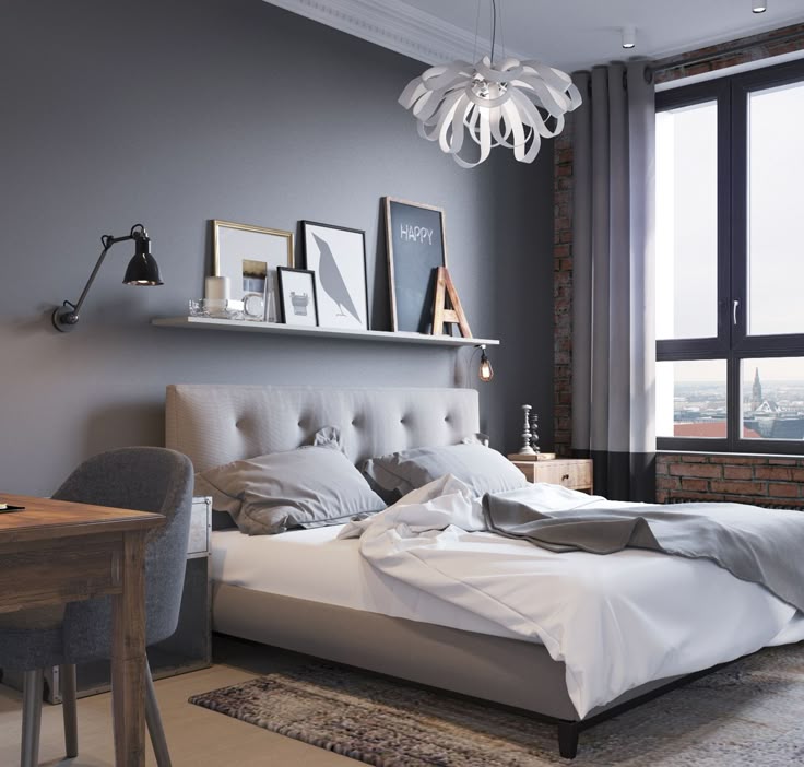 Серая спальня — тренд года. Но интерьер получается стильным и оригинальным при правильном подборе палитры. Такой цвет оправдан при оформлении помещения в стилях хай-тек, лофт, минимализм, сканди. Базовый серый прекрасно «чувствует» себя в тандеме с белым, розовым, синим, желтым, коричневым.