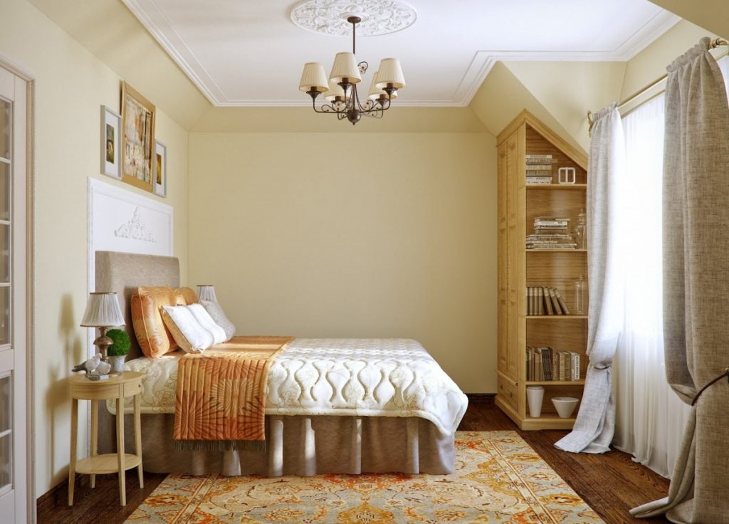 Иногда загородные дома строят малогабаритными, поэтому при выборе комнаты для спальни небольшой площади следует учитывать следующие факторы: