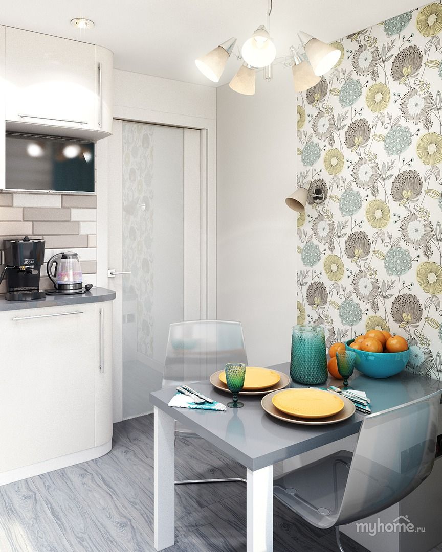 При выборе обоев следует учитывать размеры самой кухонной комнаты, особенно, если кухня маленькая.