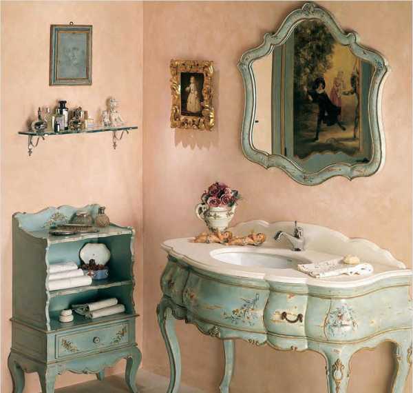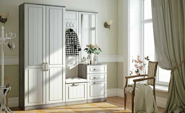 Здесь следует отказаться от больших шкафов купе и отдать предпочтение легкой вешалке для одежды, красивому резному комоду на ножках и настенному или напольному зеркалу в изысканной раме.