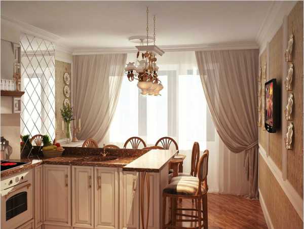 На фото прованс интерьер кухни с барной стойкой в светлых тонах.