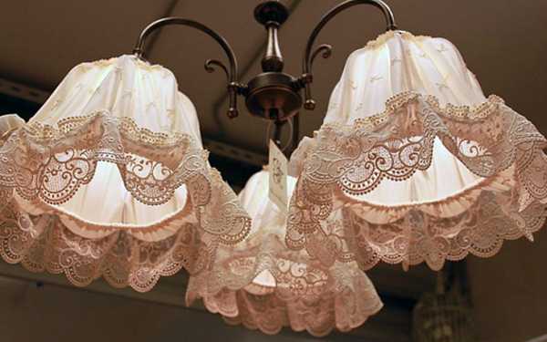 Люстра в виде канделябра либо с тканевым абажуром – подходящие варианты для гостиной или спальни в стиле прованса