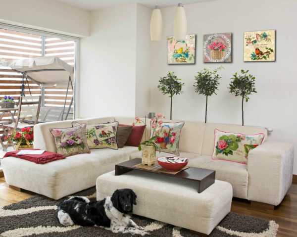 Гостиная комната в стиле прованса должна быть максимально наполнена солнечным светом
