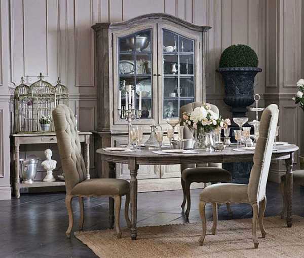 Старинные или искусственно состаренные, инкрустированные флористическими узорами буфеты, серванты, книжные шкафы и низкие комоды создают неповторимую атмосферу дома с богатой историей.