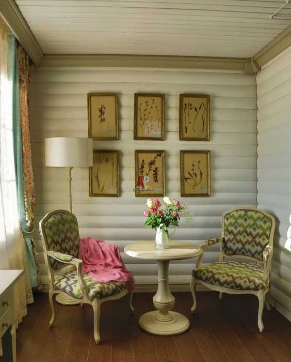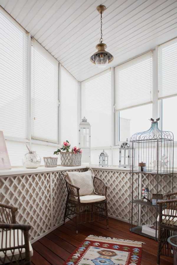 Балкон в стиле прованс станет прекрасным местом для утреннего кофе. Отделка из беленого дерева добавит еще больше света. Для регулирования дневного освещения используют римские или рулонные шторы. В качестве мебели можно использовать пару небольших кресел и круглый кофейный столик.