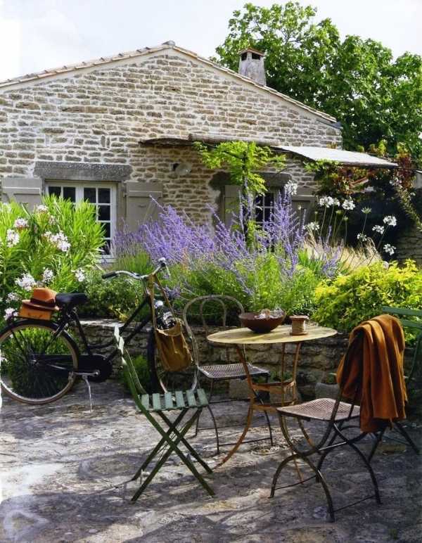 Одним из ключевых элементов деревенского стиля являются цветы. Причем букеты живых цветов присутствуют в доме постоянно, а не «в честь праздника», как это принято у нас. Они расставляются во всех комнатах, не исключая и ванную: на подоконниках, на столах, комодах, тумбочках, туалетных столиках. Сам дом непременно должен быть окружен роскошным цветником. Цветы здесь высаживают у крыльца, на террасе, вдоль дорожек, в саду. Любимый цветок – лаванда.