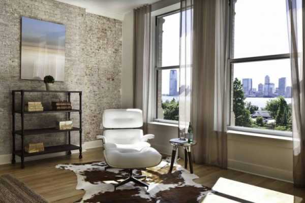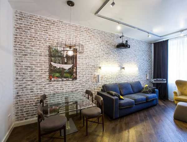 Увеличить комнатное пространство двухкомнатной квартиры 60 кв. м., не прибегая к перепланировке — очень выгодно. Белый цветовой дизайн стен полностью уберёт границы, а сочетание с белым кирпичом будет смотреться интересно.