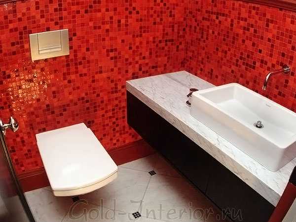 Светлые цвета, как известно, визуально расширяют пространство, тем более, что китайская даосская концепция благополучного устройства жизненного пространства советует использовать в оформлении туалета белый и красный цвета, чтобы «деньги из дома не смывались в унитаз».