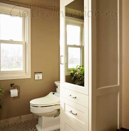 Какой бы по площади не была туалетная комната, она гораздо комфортнее, если в ней есть место для хранения туалетных принадлежностей, бумаги, освежителя воздуха и прочих небольших мелочей.