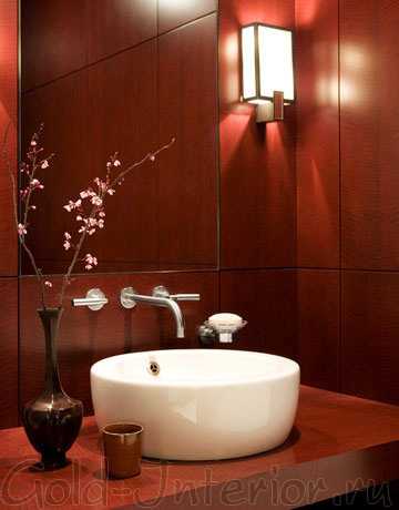 Если в жилой комнате для этой цели вполне уместно использовать зеркала, то в этой узкоспециализированной комнате они будут смотреться просто вульгарно, а гости, которые воспользуются ею, могут напридумывать невесть что, в том числе и о психологическом здоровье хозяина квартиры.