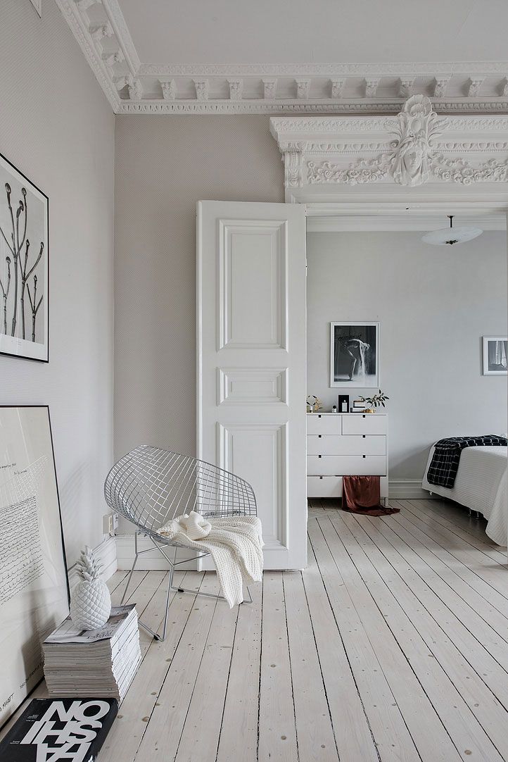Белые полы — это как розовая замша. Понятно, что ненадолго, но именно в непрактичности и есть шик. Знаете, меня всегда восхищали люди в белых брюках зимой. Такое ощущение, что этих пижонов в вакуумной упаковке по городу доставляют, чтобы не запачкались. Кажется, что они живут совсем не нашей жизнью. Так и белые полы — они для небожителей. Чтобы идти как по облакам.