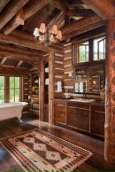 Если хотите сделать бревенчатый дом более «мужским», добавьте в его интерьер: