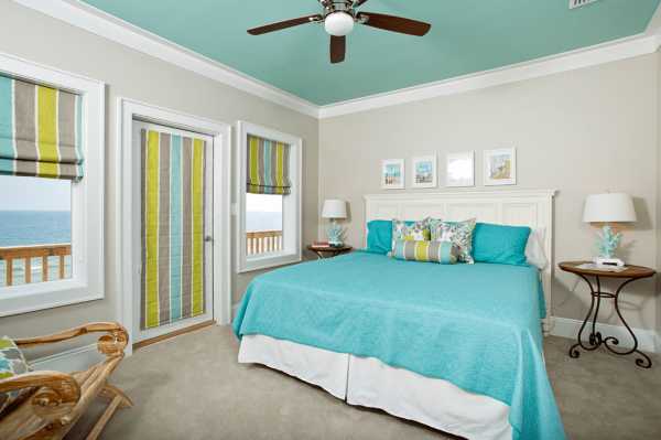 Здесь цветовая гамма располагается таким образом, чтобы тиффани был главным. А вот уже другие цвета, которыми будут разбавлять основной тон, зададут общую атмосферу. В общем, любуемся и подмечаем тонкости дизайнерской задумки.