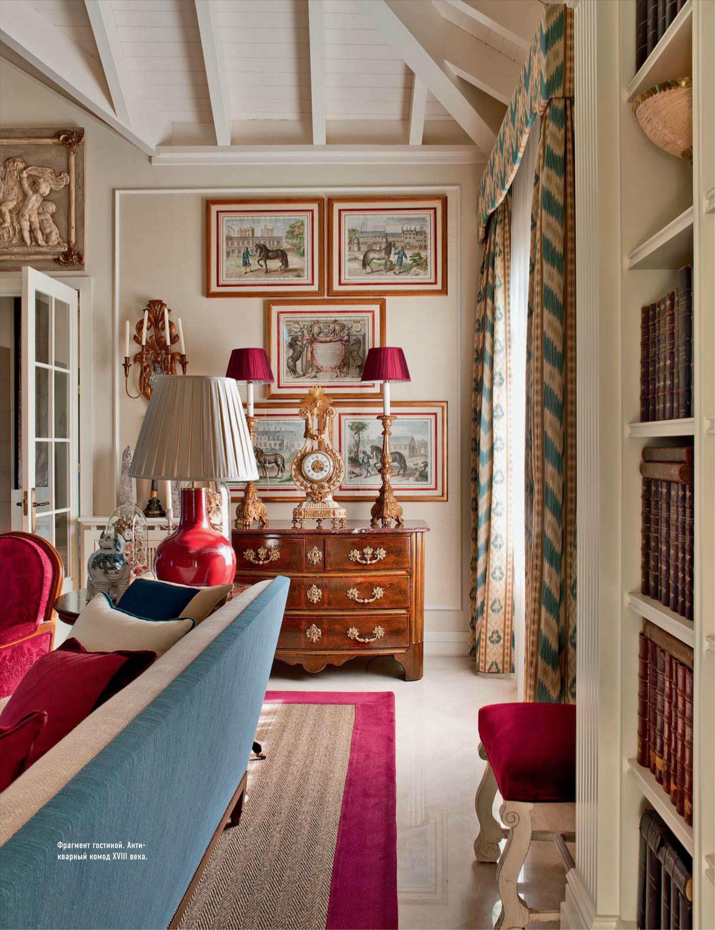 В качестве декора используйте произведения искусства – картины, глиняные вазы, ковры, гобелены. В интерьере гостиной присутствуют мягкие диваны и массивные стулья, обитые дорогими тканями.
