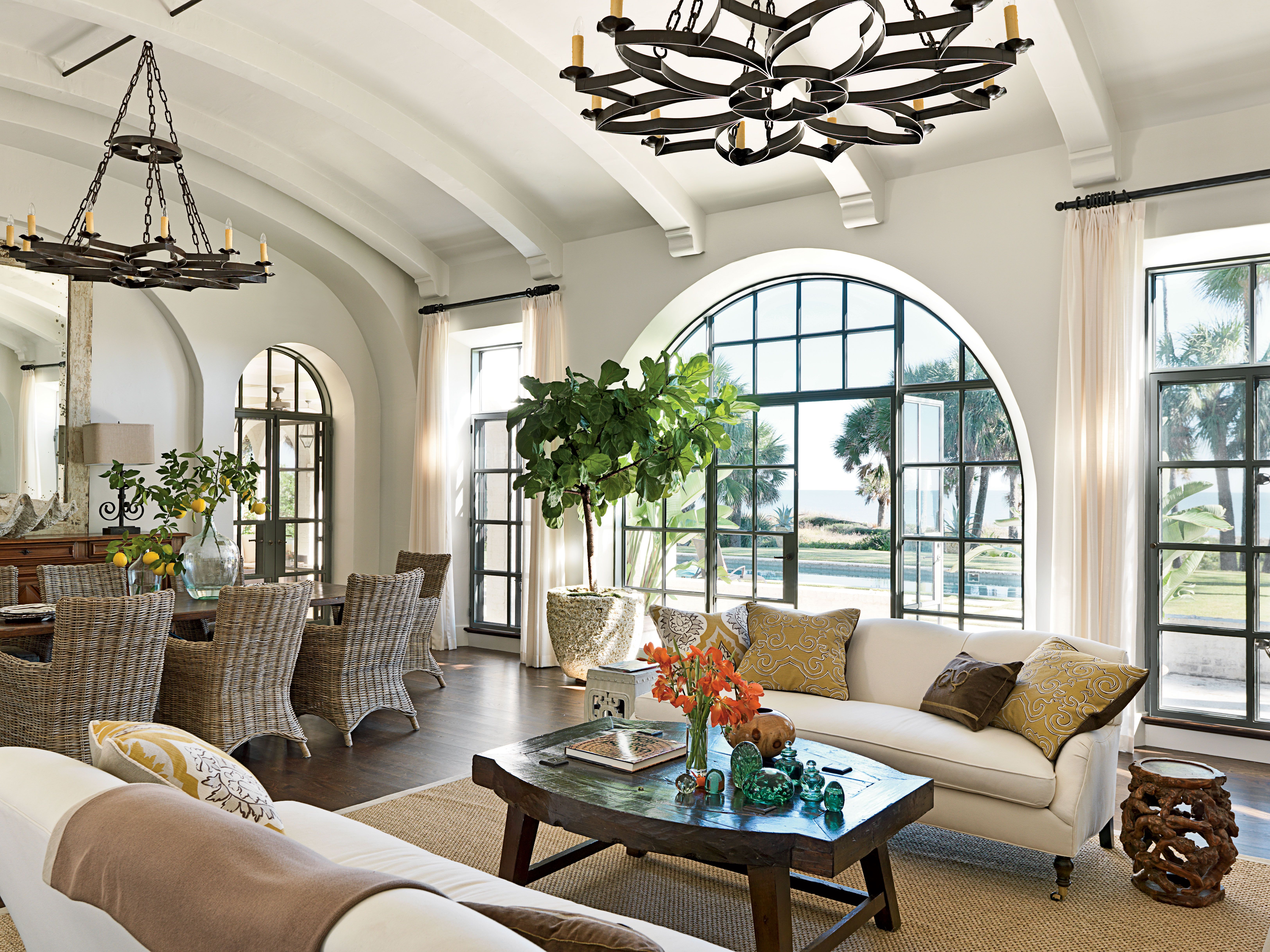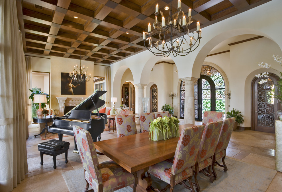 Ключевым элементом дизайна интерьера в испанском стиле является его интеграция с наружной верандой и патио дома.Планы этажей выходят на просторные открытые зоны отдыха и столовой. В некоторых случаях стены комнаты расширены, чтобы включить открытое пространство, или французские двери и арки ведут на открытые площадки, добавляя визуальный интерес и позволяя естественному свету насыщать комнату.