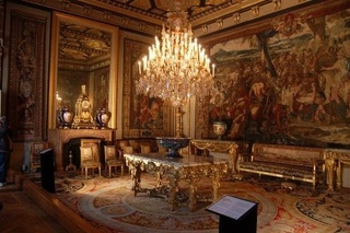 Для отделки стен можно выбрать текстиль или обои, которые его имитирует. На пол можно укладывать не только паркет, но и мраморные плиты. Вообще в процессе отделки рекомендуется использовать исключительно натуральные и дорогостоящие материалы высокого качества – камень, фарфор, шелк, ценные породы дерева.
