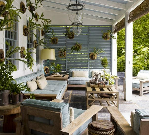 Для обустройства веранды дома отлично подойдут близкие к природе этнические мотивы. Именно в них выполнена львиная доля интерьеров загородных веранд.