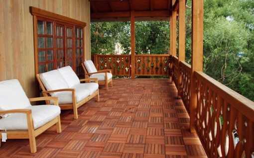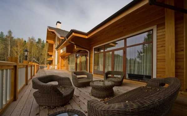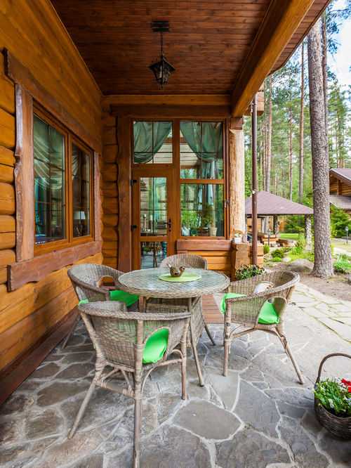 Ваша терраса должна гармонировать с общим обликом дома: если он брусовой, то и терраса должна быть из дерева, полы хорошо бы выложить из булыжника.