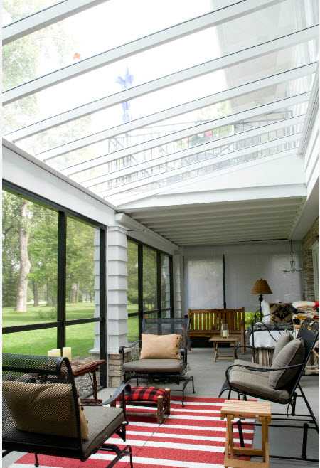 Однако обшитые поликабронатом или застекленные веранды не боятся дождя и ветра, их можно использовать как зимний сад или дополнительную столовую с середины весны и до середины осени – при отсутствии отопления – или круглогодично.