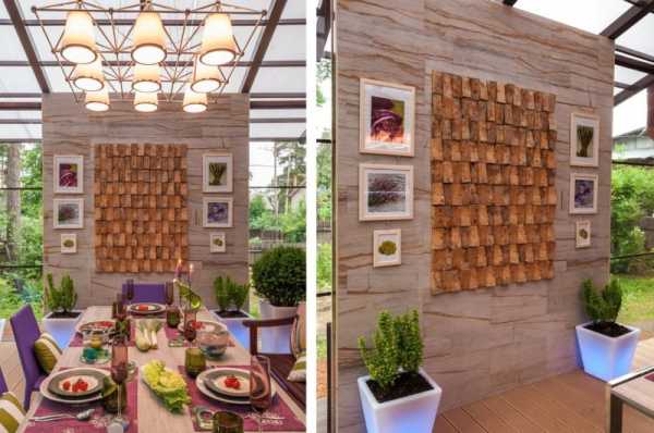 - внимание к мелочам – для украшения закрытой пристройки понадобятся композиции с растительными мотивами, изделиями из керамики, семейными снимками, вещами ручной работы;