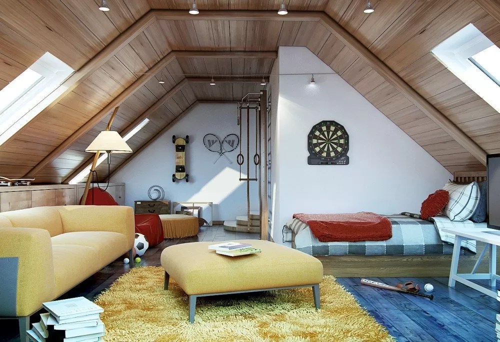 Как ярко и красиво оформить мансарду внутри, чтобы получилась полноценная спальня и игровая комната для малыша