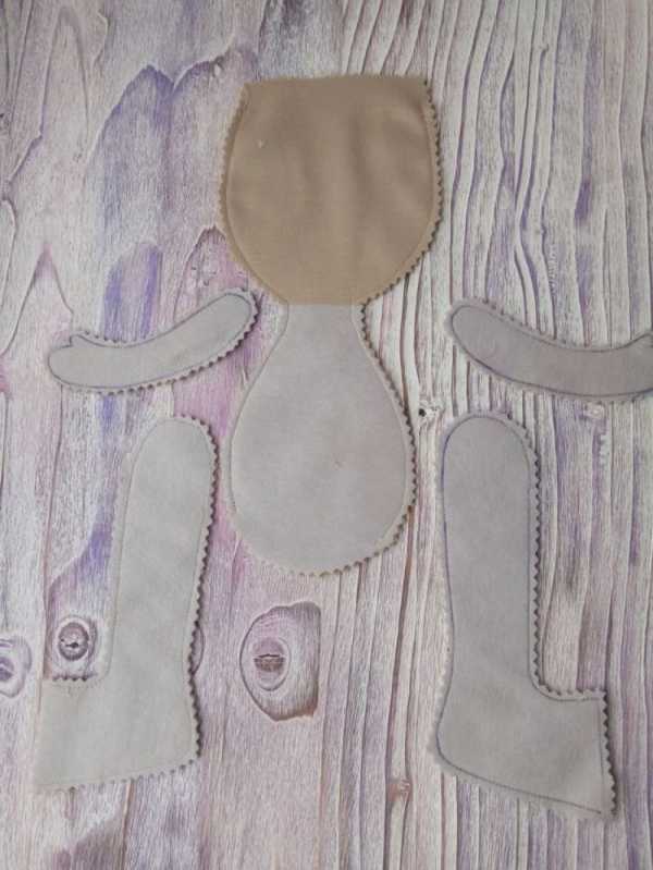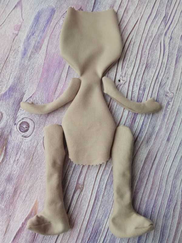 Пришиты все части, осталось только сшить одежку, прикрепить волосы и нарисовать глазки.