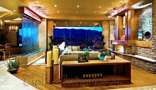 Разместить водопад в доме можно в столовой и гостиной комнате, украсив таким образом интерьер.