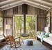 А размещение спального места под потолком позволит освободить пространство для гардероба, шкафа, рабочего стола, дополнительного кресла или игрового места для детей. Зонированию загородного дома может способствовать также плитка на стене кухни, ковры для спальни или гостиной, повторяющие оттенок мебели, эффектные занавески.