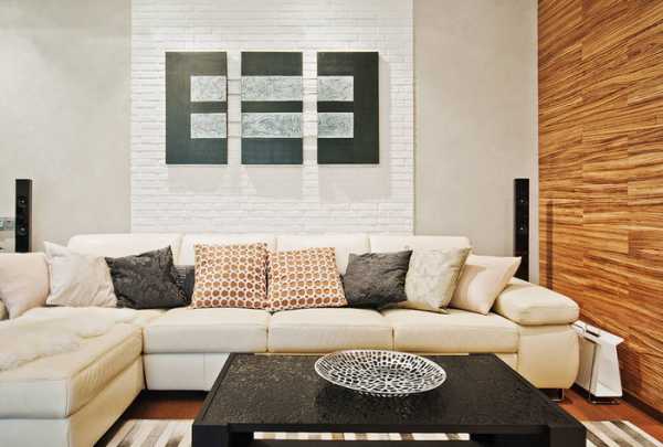 Центром комнаты станет та часть, где встанет диван. К слову говоря, в дизайне интерьера гостиных в тренде установка сразу группы диванов напротив друг друга квадратом или полукругом, с журнальным столом по центру. Таким образом создается зона для активных бесед в кругу друзей и единомышленников. Но этот вариант подходит для домов и квартир с просторными комнатами.
