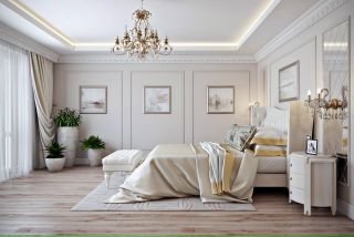 3. Неоклассика в интерьере романтической спальни: кремовые оттенки