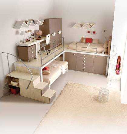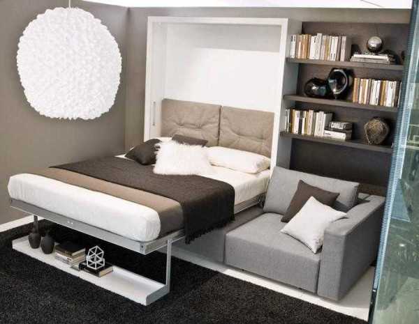Еще можно поиграть с конструкцией кровати. Они могут опускаться из-под потолка, быть замаскированы под шкаф. Такие кровати уже есть в продаже и называются «кровать-шкаф».
