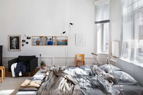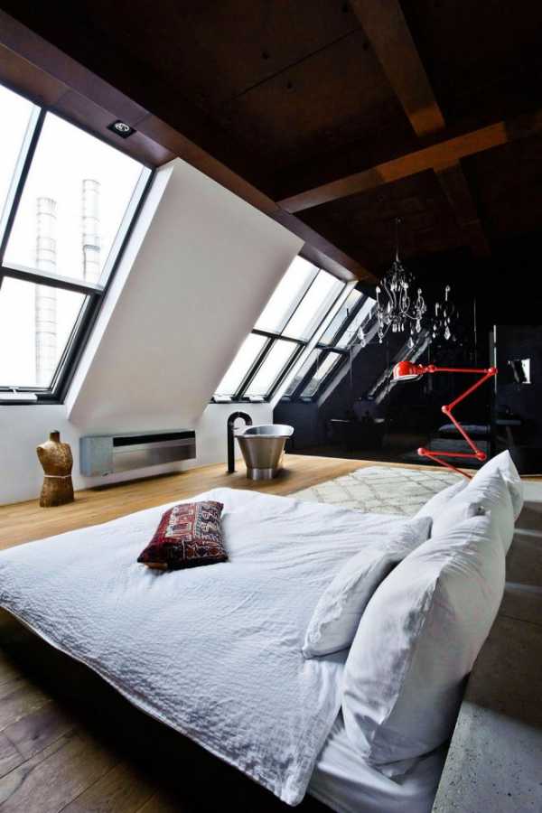 Интересные возможности открывает размещение мебели. Например, большая кровать, расположенная по диагонали, выиграет немного свободного места.