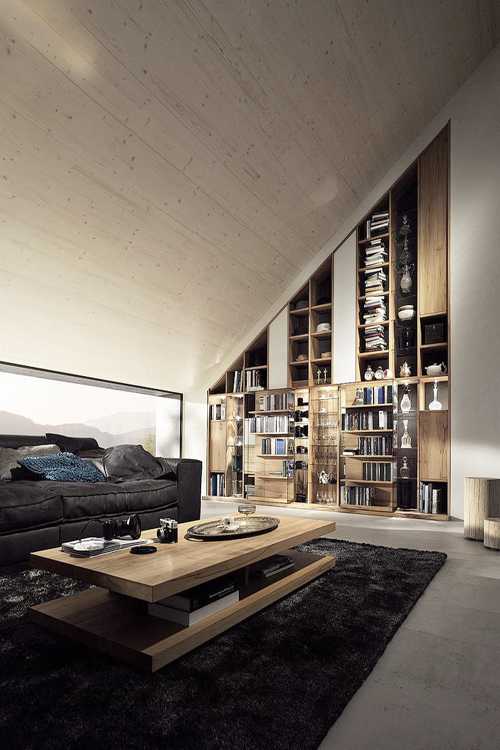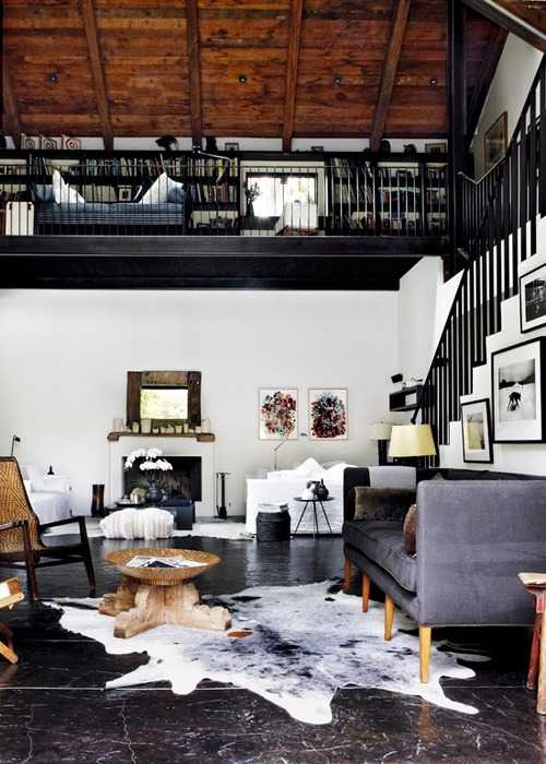 Также центральным элементом может быть и камин, возле которого уютно разместятся кресла, качалки или даже роскошные шкуры для отдыха.
