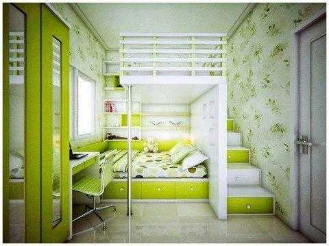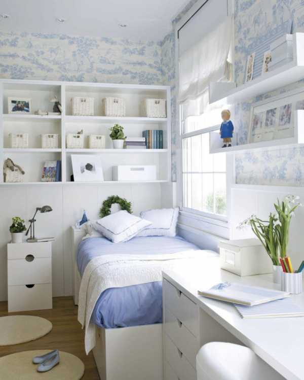 Если второе спальное место вам ни к чему, под кроватью можно сделать ящики для игрушек или вещей. В интерьере маленькой комнаты все подчинено задаче оптимально использовать всю доступную площадь, освободив при этом максимум свободного места.