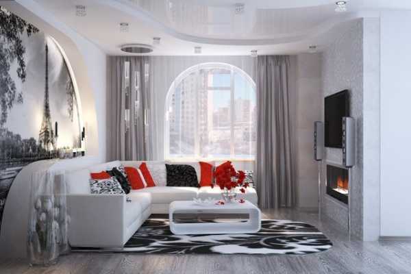 Многие современные стили интерьера приветствуют дизайн гостиной комнаты в квартире «на чистом листе». Эта техника предполагает оформление стен и потолка простой белой штукатуркой или краской. А мебель и элементы декора могут быть подобраны самых различных расцветок: ярких или насыщенно-темных – для создания эффектного и стильного интерьера, нежных и пастельных – для легкого, уютного и изящного дизайна.