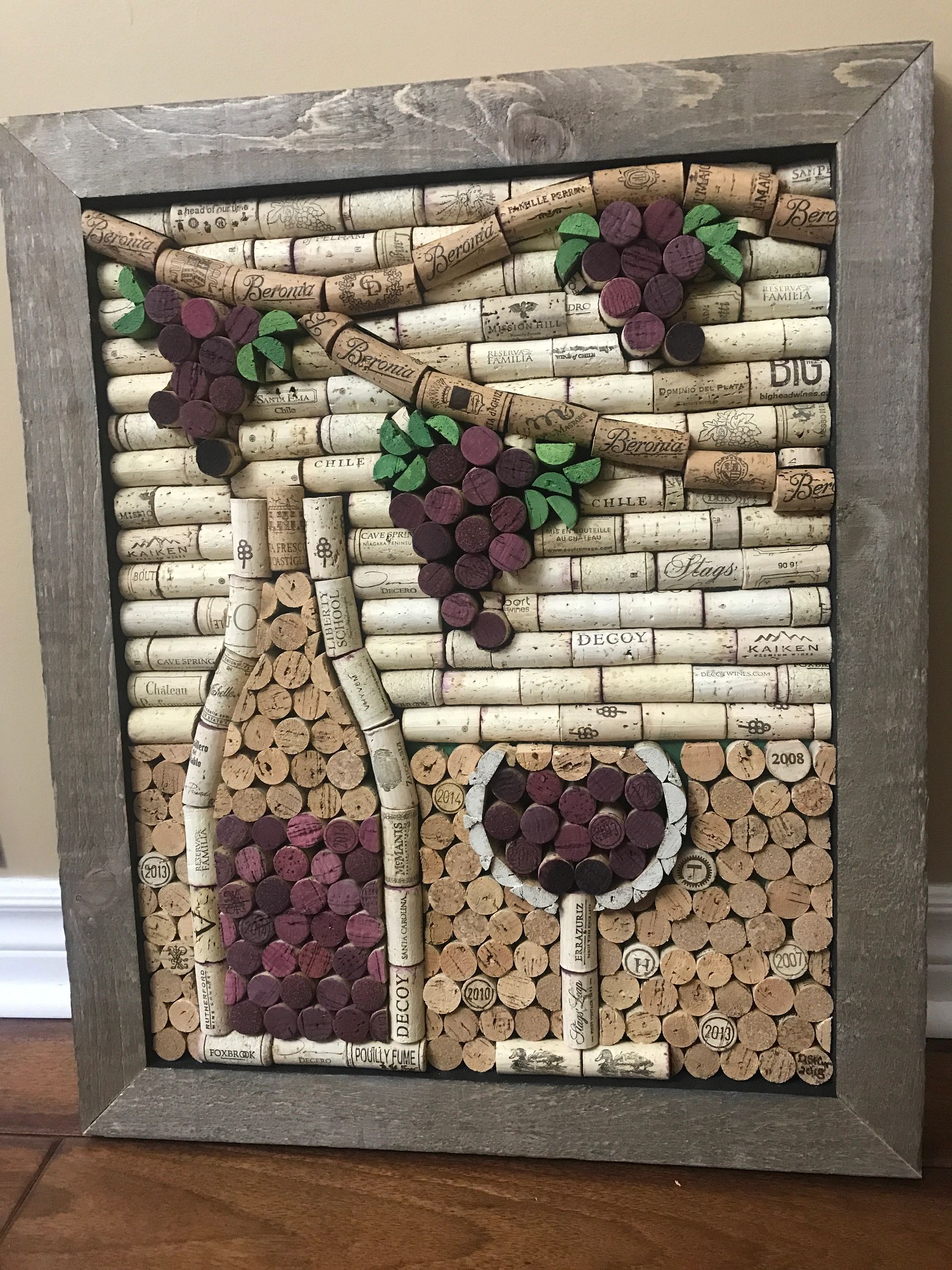 Вариантов такого декора очень много. Пробки можно приклеить к обычной доске или к старому ящику письменного стола, а можно взять в рамочку.