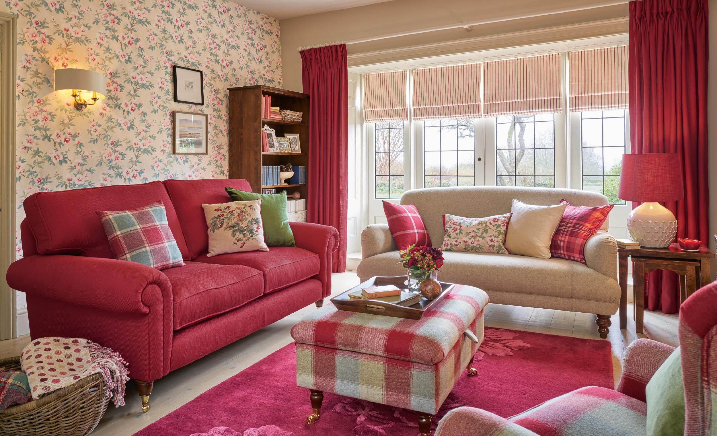 Красные и розовые тона (например, диван Belez цвета Terra Red и подушки Lucca цвета Blush Pink) создают веселое, но в то же время душное настроение.