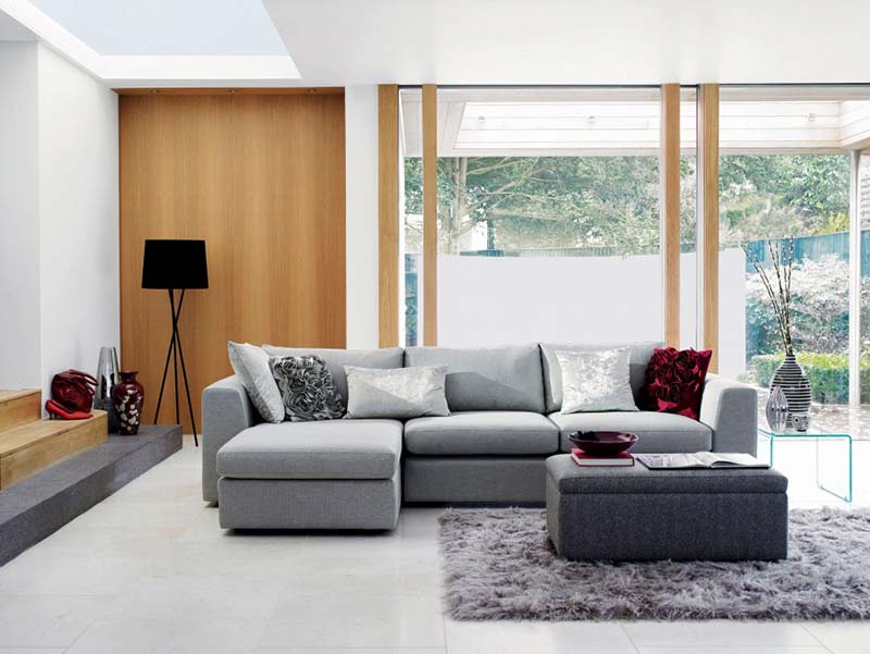 Диван серого цвета сочетается с сиреневым, красным и желтым цветом. Серый диван придает строгости и четкости интерьеру.