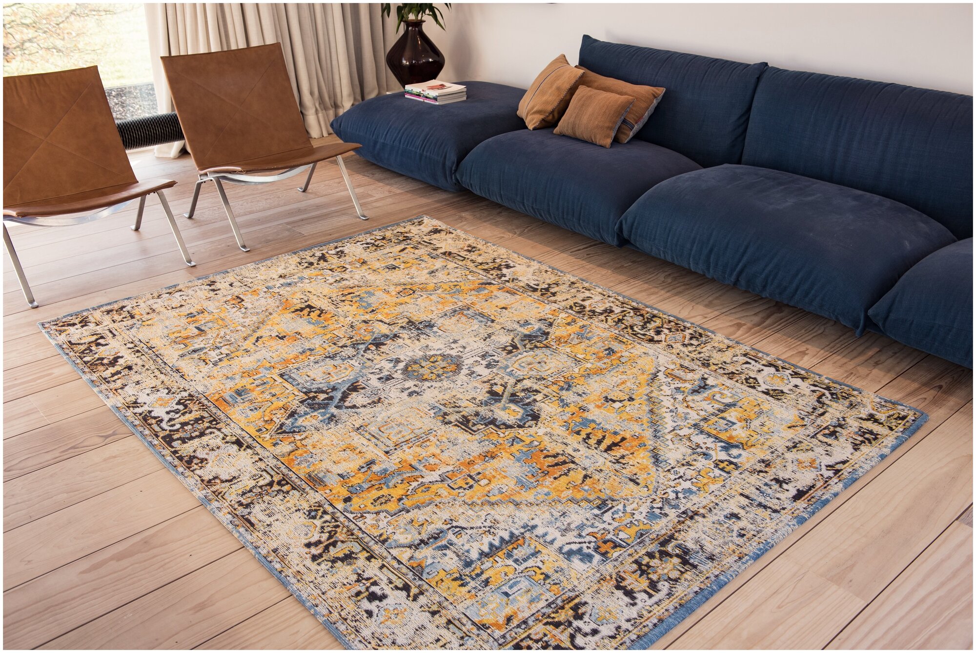 «Коврик не должен быть доминирующим элементом в комнате», — говорит де Биази. «Это должно быть частью общей схемы».