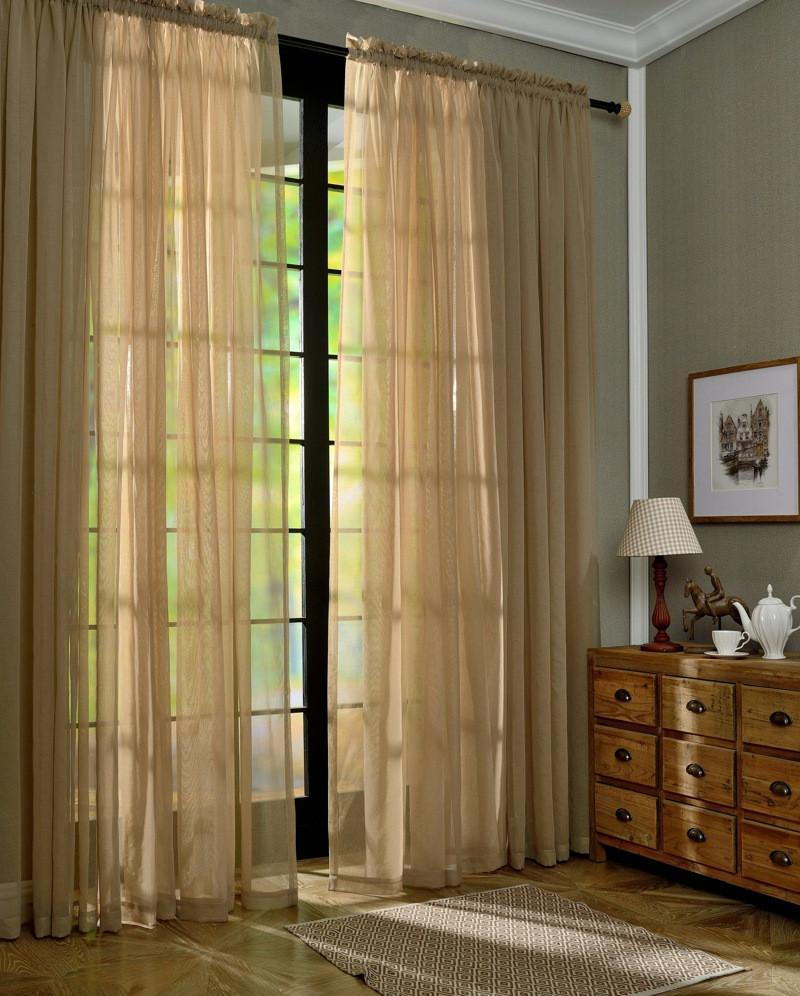 Шторы, сделанные из чистого льна будут плохо смотреться с тюлем, сделанным из синтетики, даже в случае, если он будет иметь полотняное плетение.
