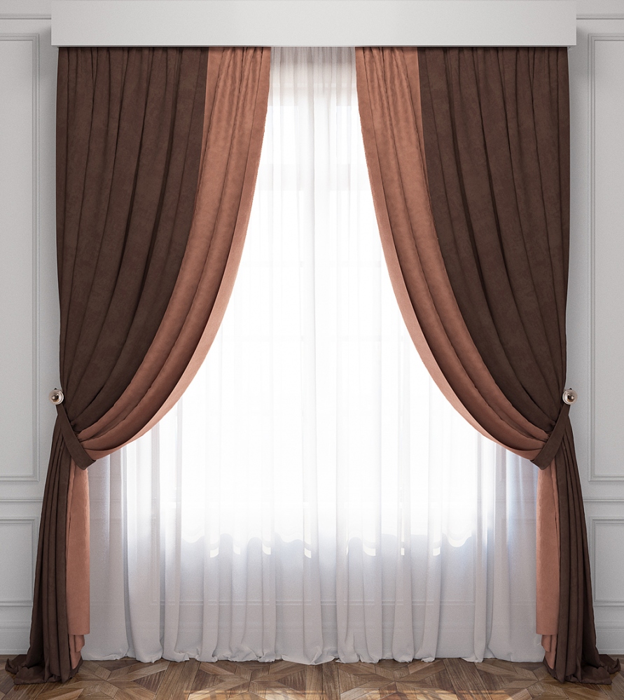 Бархат и атласные материалы ни в коем случае не следует сочетать с грубыми льняными полотнами и другими тканями, которые имеют грубую текстуру. Тонкие тюли из шифона и аналогичных материалов необходимо дополнять более тяжёлыми и плотными шторами, сделанными из тафты или сатина. В этом случае не стоит приобретать и льняные модели, они будут смотреться негармонично с шифоном.