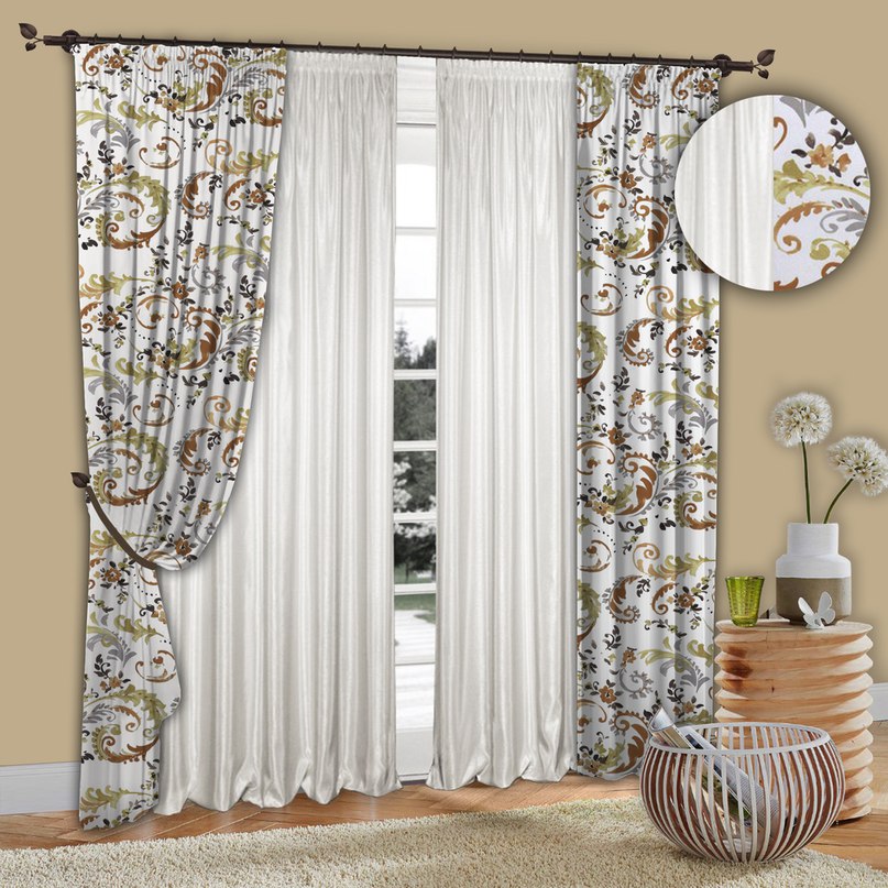 Также есть очень интересные комплекты оконного убранства, которые имеют одинаковый рисунок, но разный фон. Ещё более необычно смотрится сочетание ярких штор с неброским рисунком и светлого тюля с аналогичным узором, выполненным под цвет фона занавесок. Также есть и интересные трехцветные комплекты, которые включают в себя двухцветные шторы и тюль, который очень близок к одному из этих тонов, причём один из трёх цветов всегда является ярким, акцентным. Очень стильно смотрится комплект короткого тюля и длинных штор.