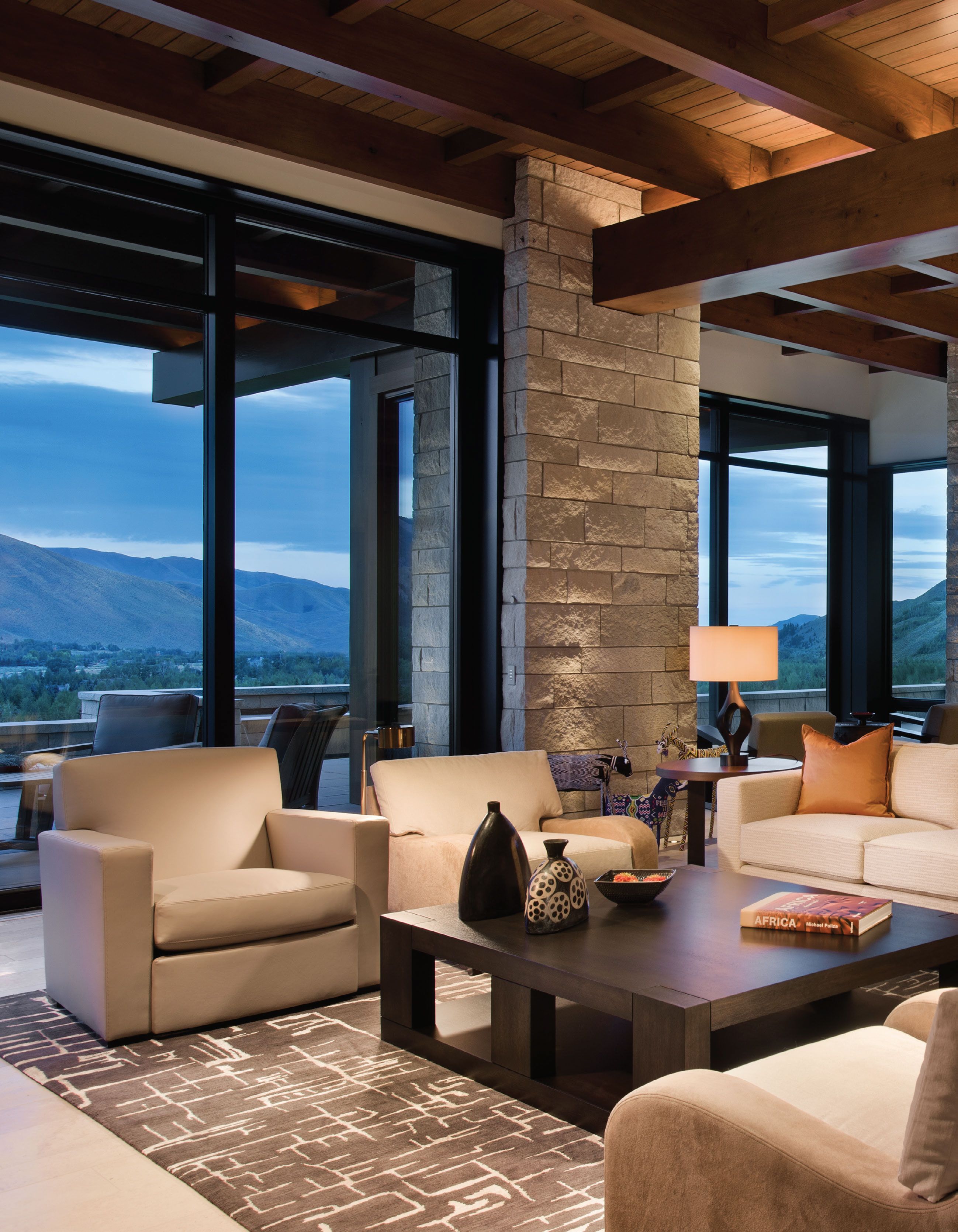 Отдельное внимание уделяется различным системам хранения: в таком интерьере непременно присутствуют корзины, коробки, ящики. Мебель изготавливается из натуральной древесины, а также из стекла, пластика. Красота такого стиля заключается во всевозможных интерьерных акцентах. Очень разнообразен декор: шкуры животных, пледы, свечи, постеры, керамическая броская посуда.
